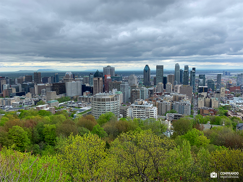 Era possível ver todo o Parque de Mont-Royal, a cidade de Montreal, a Ilha de Montreal e até mesmo o complexo que se encontra o Estádio Olímpico mais distante. Eu não queria ir embora. Era a minha última noite na cidade e eu só conseguia pensar o quanto eu era grata por finalmente ter realizado o sonho de finalmente conhecer aquela cidade e estar encerrando essa experiência da minha melhor maneira: com o skyline e pôr do sol.